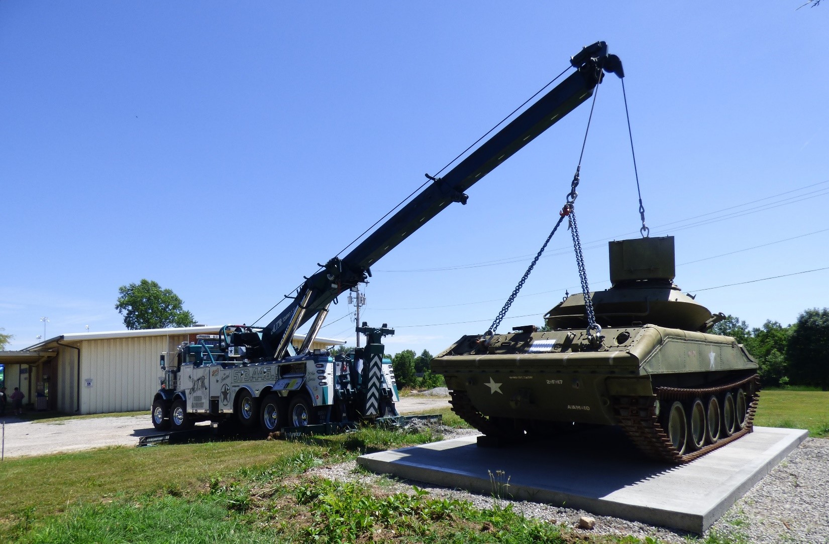 Fortunately, one of our Post 202 members had a nephew that was part owner of ATR Towing in Columbia. ATR had a 30-ton flatbed trailer and gave us a great deal in support of Veterans. That made getting the 1960s vintage M551 Sheridan tank a no-brainer. It would give Post 202 much needed attention.