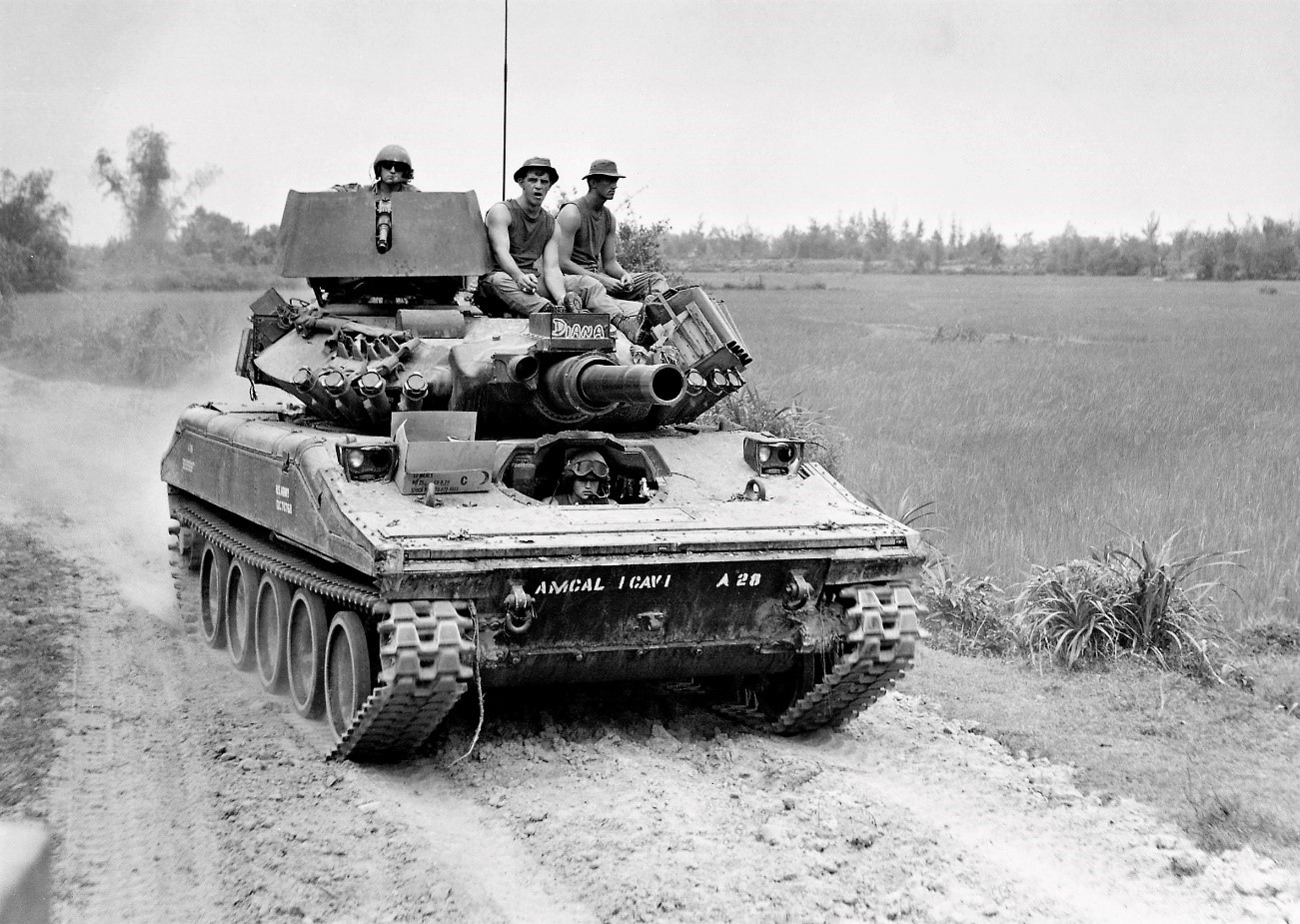 The Sheridan had a crew of four; Commander, Gunner, Loader and Driver. Vietnam - Photo by Herbert Brady, U. S. Army Signal Corps Photographer